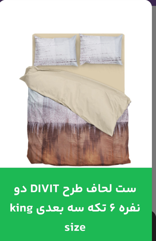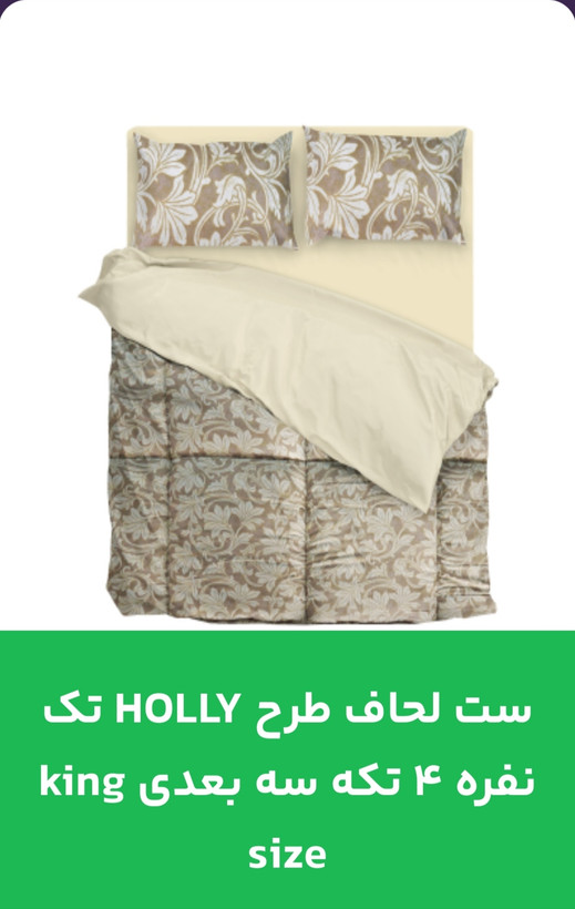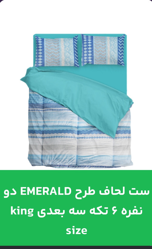 مشخصات کلی.ابعاد بسته بندی, 30*50*70 سانتیمتر, مشخصات کلی.وزن بسته بندی, 6000 گرم, مشخصات کلی.نوع مدل, سه بعدی دیجیتال, مشخصات کلی.کشور سازنده, ایران تحت لیسانس turkaz ترکیه, مشخصات کلی.مشتمل بر, لحاف روتختی سه بعدی دو رو ،ملحفه کش دار تشک،چهار عدد روکش بالش, مشخصات کلی.نوع چاپ, دیجیتال سه بعدی فوق پیشرفته, مشخصات کلی.قابلیت شستشو, خشک شوئی, ,, شستشو با دست, ,, ماشین لباسشویی